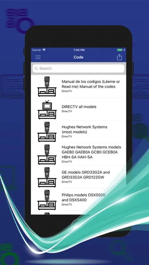 Codes remote controller of your Universal DirecTv this app allows you to quickly select thousands of codes tv manufacturers so you can set your control or (Control) for television. Controlles universal code DirecTV universal code controlles for DirecTV