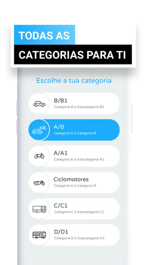 * Teste completo para as categorias A, AM, B, A+B, C e D com controle de tempo.