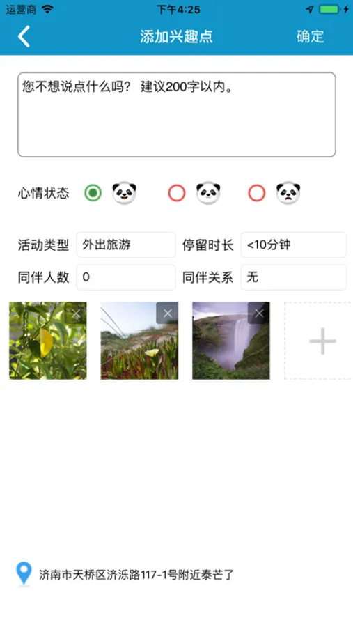 Mytrace is a map-based localization application. It may record your trace and photos in your trip or daily life. You can share your photos with a trace map to your friends or share them in WeChat(WeiXin) moments or other social networks. You also can participate in questionnaires about your trips to feedback your reviews to view spot managers and tourism researchers.