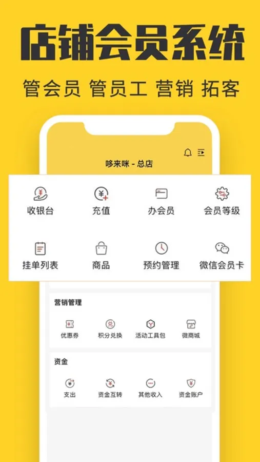 集会员管理、收银管理、客户营销、库存管理、账务管理、员工绩效考核于一体,打造方便快捷的移动端全功能信息化系统。同时提供顾客微信端入口,支持顾客自助查询消费、充值等流水记录并接收公众号通知,方便店铺连接顾客,提升店铺服务能力。