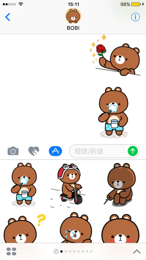These Bobi Bear stickers are waiting for you.Add some Bobi Bear stickers to your iMessages express what you want to express.