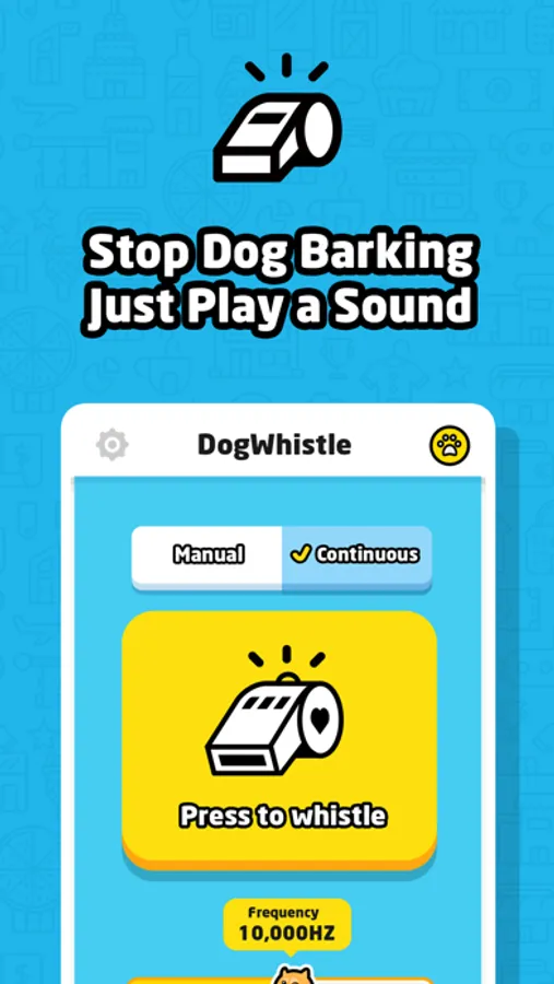 -Manual: Touch the screen to play the dog whistle training up sound and move your finger to stop it