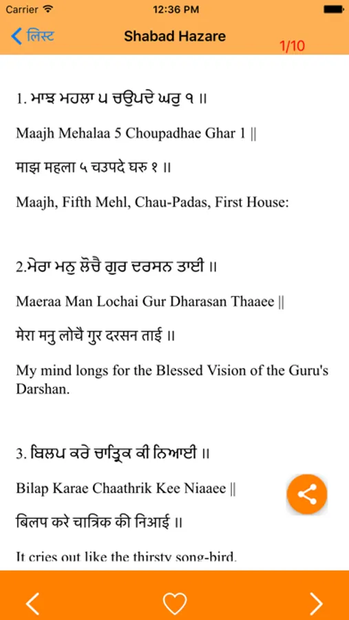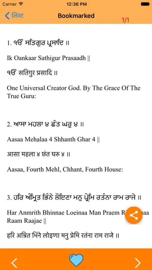 3. Bookmark can be placed on any line. The next time you start the app, it opens at that particular line.