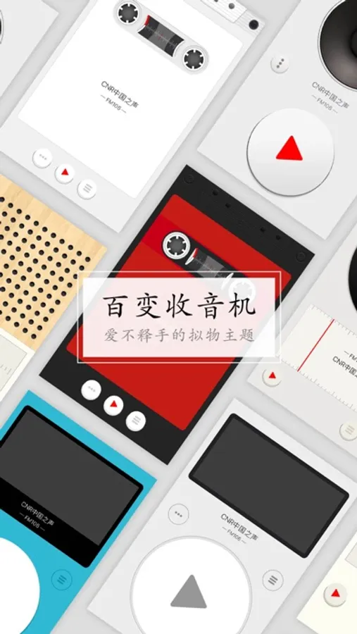 一款个性十足的网络收音机,各种复古拟物主题,黑胶,随身听,磁带,录音机,音响,木质等,反正免费何不下载试试!