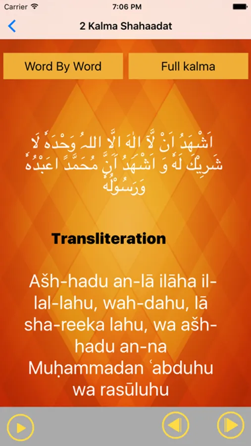 The 6 Kalmas of Islam is an application in which people can recite the Kalimas of Islam with perfect pronunciation and translation. The Application inculcates 6 Kalmas that are obligatory upon every Muslim to learn by heart.