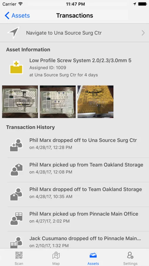 QMAP delivers a real-time asset tracking solution to medical device distributors. Scan assets for pickup or drop-off and let the system guide you through the transaction with smart suggestions. Quickly view asset turnaround times in list or map forms, contact possessors with a single tap, or navigate to new accounts. Create custom asset groups for quick filtering and value reporting based on your organization's specific needs.