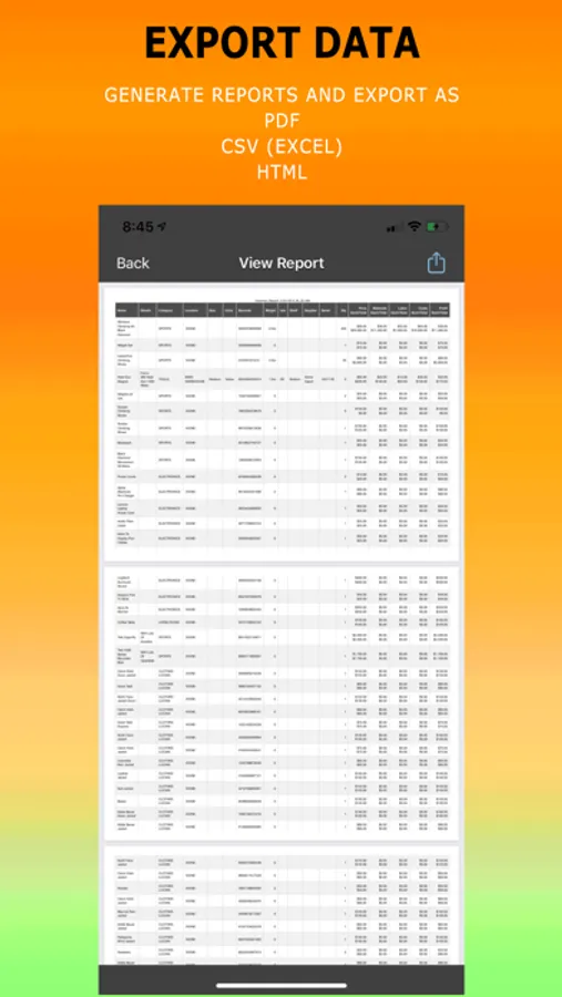 3. Customizable Inventory Report with additional Filters and Export type options CSV and PDF (with AirPrint option)