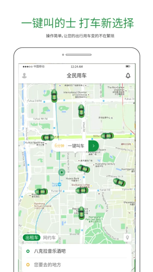 全民用车为方便大众出行,提供网络约车、出租车、等多项出行服务。