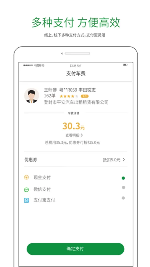 -出租车出行:通过手机APP一键叫车,司机到点接驾,无需路边等待拦车。