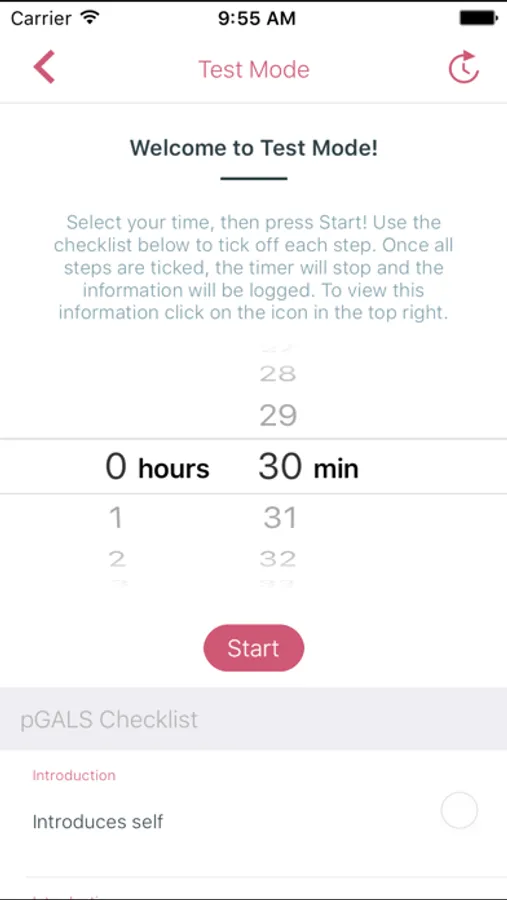 You can test your performance against a timed pGALS checklist and keep a record of your progress.