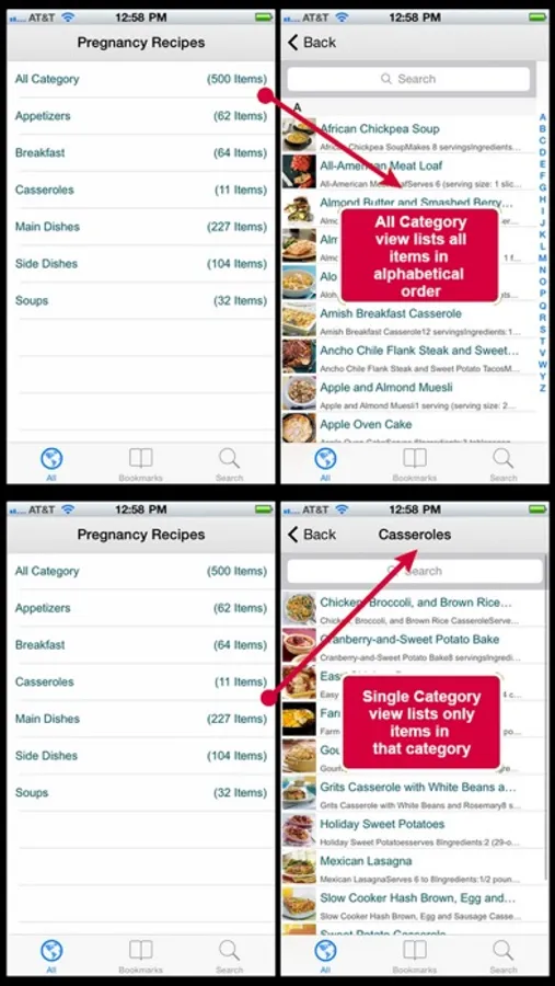 * 2-Level Category Views with THUMBNAIL preview of each recipe