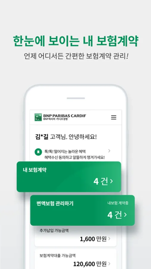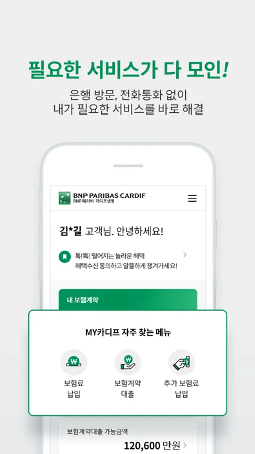 MY카디프 BNP파리바 카디프생명 고객 여러분을 위한 편리한 디지털 서비스를 제공합니다.
