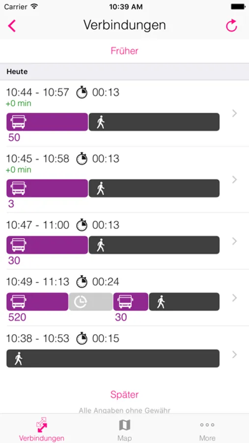 - Verbindungsübersicht mit detaillierten Informationen zum Reiseverlauf inklusive Echtzeit-Infos zu Zeiten und Störungen