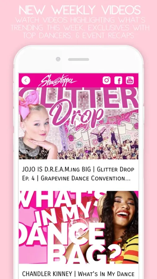 • Watch all your favorite showstoppin' video series like What's In My Dance Bag, Glitter Drop, Showstopper60, and more!