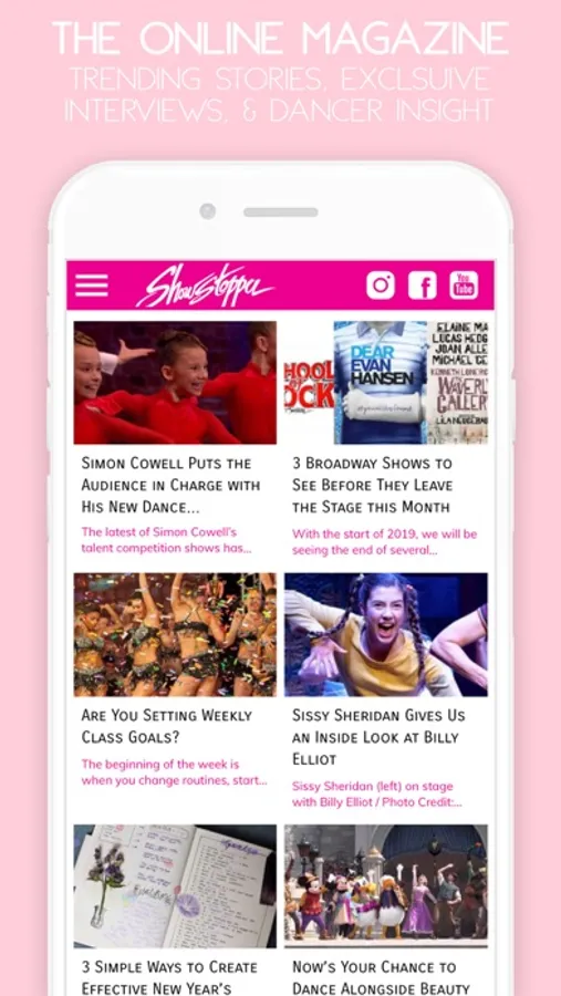The Showstopper App has it all for dancers and non-dancers alike - Trending stories in dance and teen lifestyle that you should be reading right now. Exclusive interviews and videos of your favorite celebs that you cannot see anywhere else. And for all our competition and convention goers, a full set of resources to make your Showstopper experience that much better.