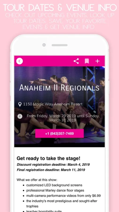 • Every resource you could possibly need for competition weekend, like personal schedules, directions to the venue, AND the easiest way to order your performance photos and videos!