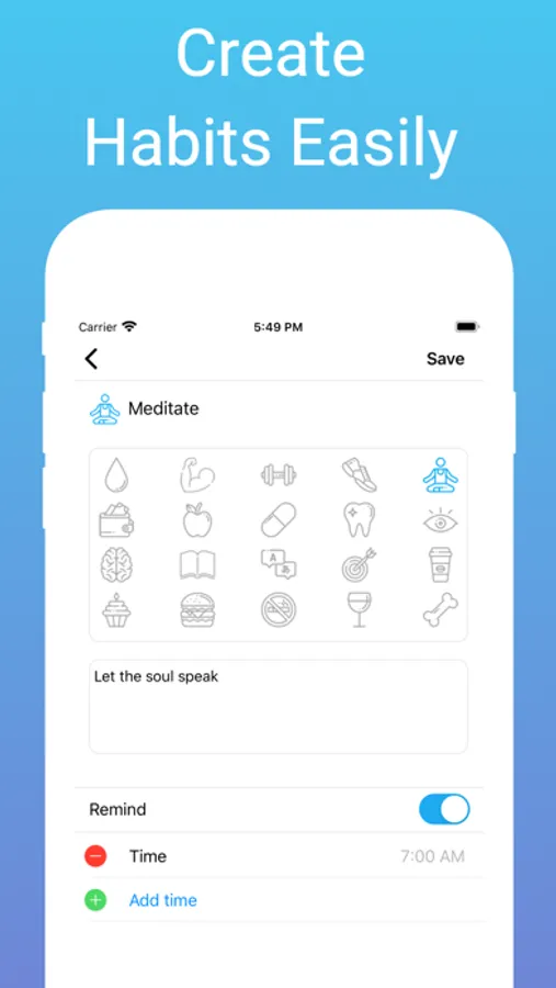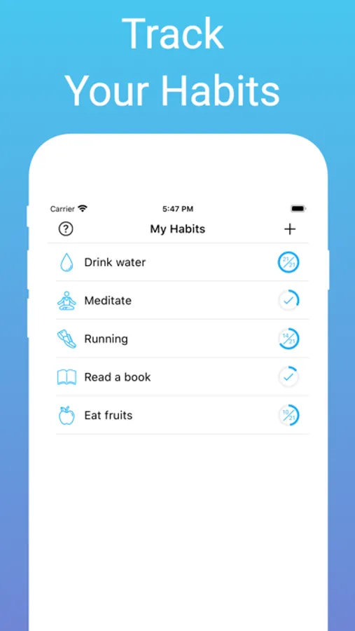 "Habit +" is your personal assistant on the way to changes. Scientifically proved formula 21-40-90, which underlies the application, will help you to build good habits and break bad ones.