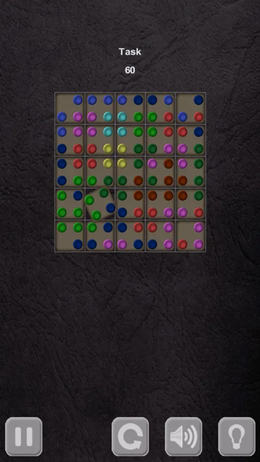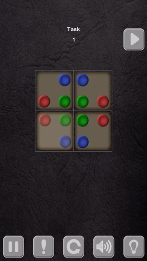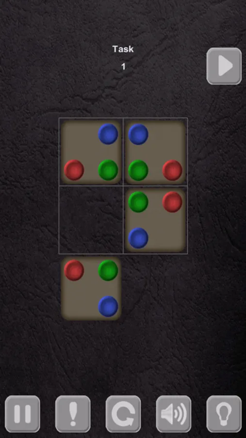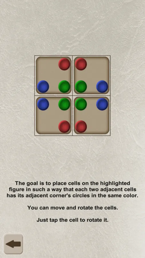 The goal is to place cells on the highlighted figure in such a way that each two adjacent cells has its adjacent corner's circles in the same color.