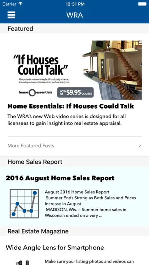The Wisconsin Realtors Association mobile app brings the resources of the WRA to your fingertips. Featuring the Wisconsin Housing Statistics, Legal Hotline & Hotline, Member Profile, Course Schedule, Articles and more.