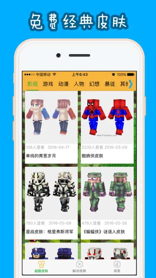 2、超酷我的世界MC影视皮肤、游戏皮肤、动漫皮肤、人物皮肤、幻想皮肤: