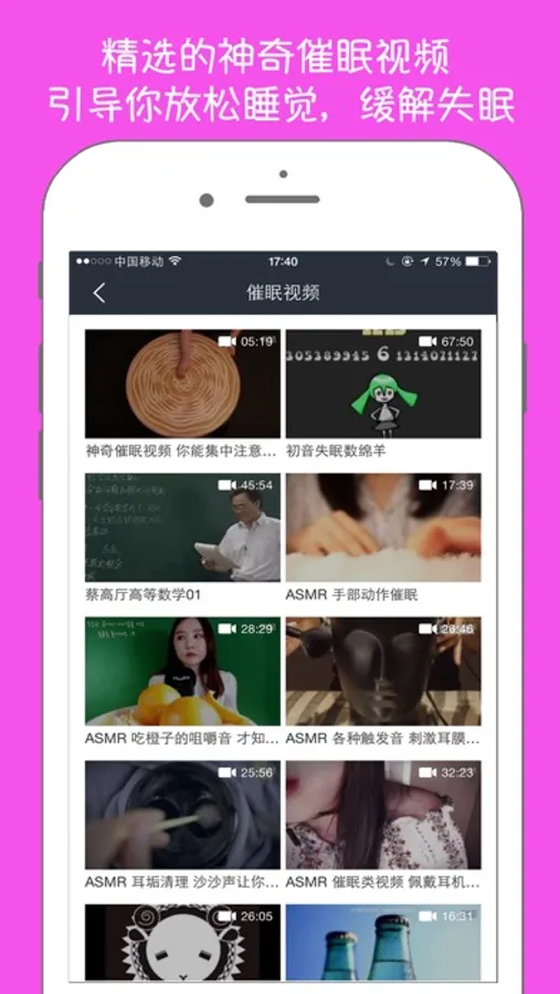 我们精选了改善睡眠的各种文章,大自然的声音(如下雨声、蛙叫声),无聊地让人想睡觉的视频和图片,让你在飞机上、高速大巴上等难以入睡的场合,催眠助手都会希望给你提高睡眠的品质,轻松应对明天的变化。
