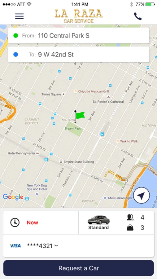 It doesn't matter if your reservations were booked over the phone, on-line or via your mobile device, La Raza Car Service app allows you to manage all your ground transportation needs right from your phone or tablet.