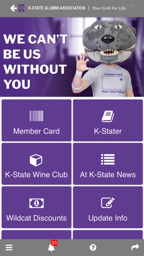 The Your Link for Life app helps connect alumni, students and friends to K-State while bringing the membership experience to your mobile device. With the app you will be able to renew your membership at your fingertips, find an alumni event near you and receive the latest alumni news through mobile alerts. Current members can also access their mobile membership card and view their member benefits. Stay connected to K-State by downloading the app today!