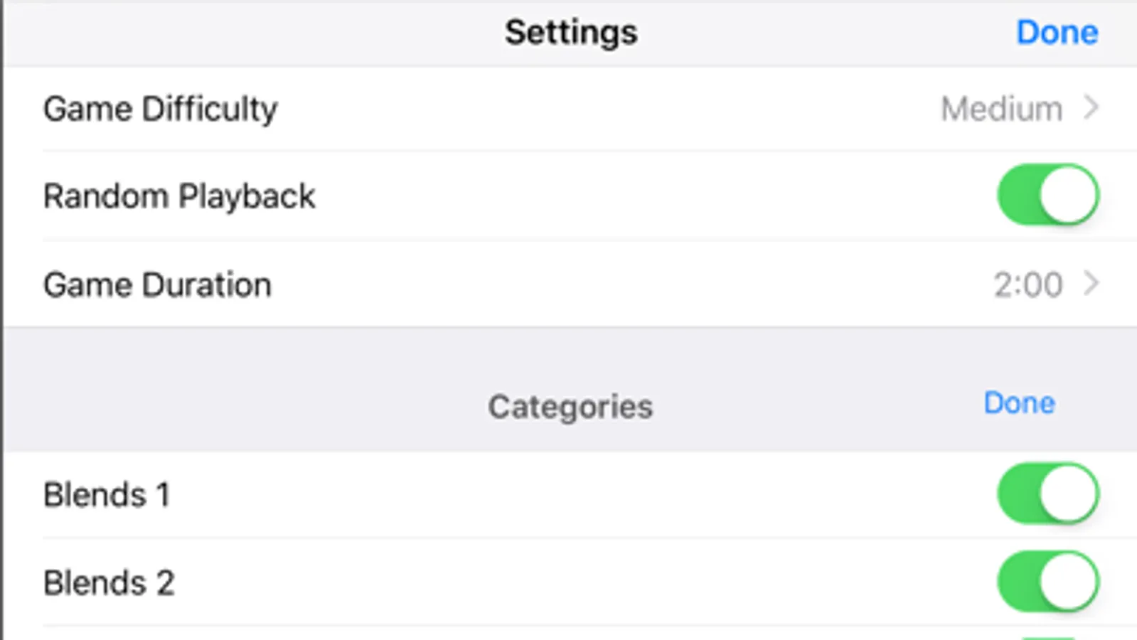 • You decide what to focus on - turn individual categories ON or OFF from the settings page. Just press on the ON / OFF button. You can also turn individual letter and phonic sounds ON and OFF within each category.