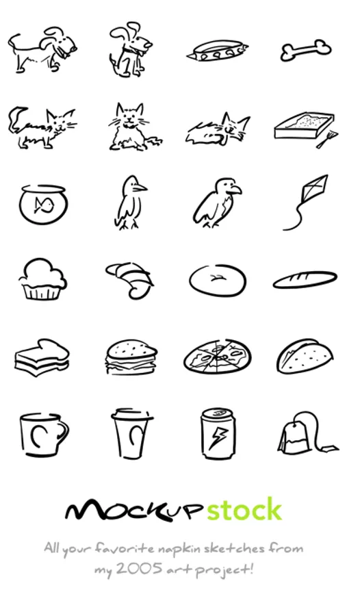 Finally, a sticker pack with all your favorite napkin sketches from my art school thesis project, MockupStock.com
