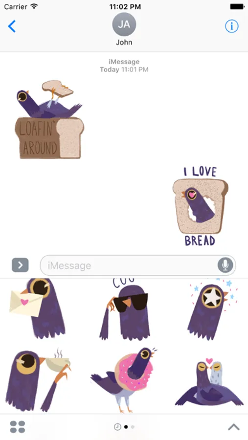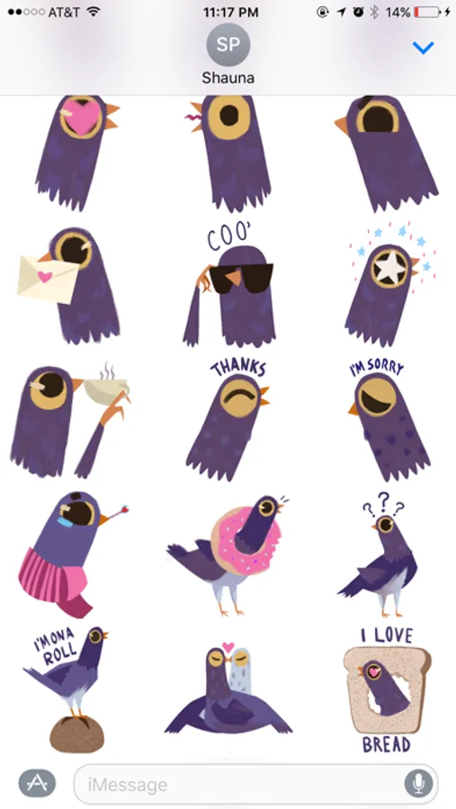 37 Pigeon Stickers, 13 animated. For your coo' conversations.