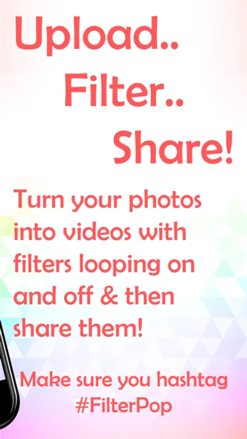 Apply a filter to your image and turn it into a video with the filter looping on and off your image, and then share it with your friends or save it to your phone.