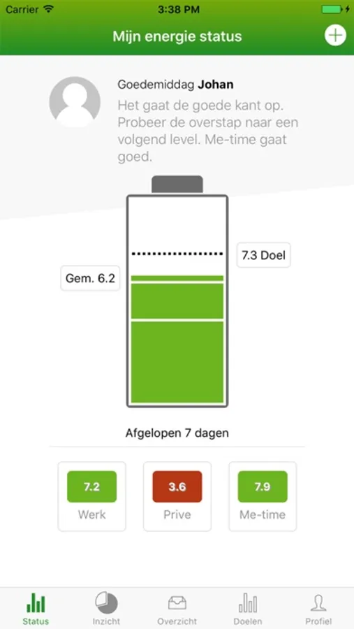 Deze app zorgt er voor dat medewerkers en werkgevers inzicht krijgen wat hen energie geeft en wat hen energie kost op het gebied van werk, privé leven en zichzelf. Bewustwording van je eigen energiehuishouding, doelen stellen en die trachten te realiseren heeft als doel ziekteverzuim te voorkomen, de work-life balans te optimaliseren en kwaliteit van leven en duurzaam functioneren te verbeteren. Simpelweg gezegd is dit een practische manier om zorg te dragen dat je persoonlijke batterij altijd voldoende opgeladen is. De app is laagdrempelig en gebruikersvriendelijk en binnenkort als pilot (tijdelijk) gratis verkrijgbaar in de appstores van Apple en Google.