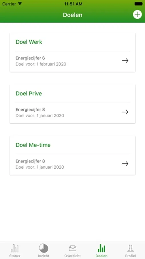De gebruiker kan doelen voor zichzelf instellen, die hij op een bepaalde tijd bereikt wil hebben. In de app wordt deze doelen, o.a. streefcijfers op energieniveau, langs de ingevulde data getoond, zodat de gebruiker kan zien of hij op de goede weg zit. In de volgende release kan aangegeven worden wat je nodig hebt om je doelen te bereiken en vast te houden. Dit maakt het SMART (Specifiek, Meetbaar, Acceptabel, Realistisch en Tijdsgebonden) voor de gebruiker.