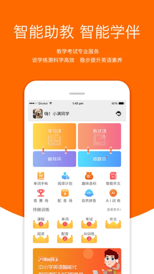 「3E口语」是利用现代信息技术、AI智能技术、优质英语学习资源构建的智能学伴。平台基于英语听、说、读、写四项基本语言技能,遵循语言学习规律,采用人机交互学练、智能读写、精准测评等方式,提供多场景趣味学习模式,促进学生语言综合运用能力发展和综合素养整体提升。