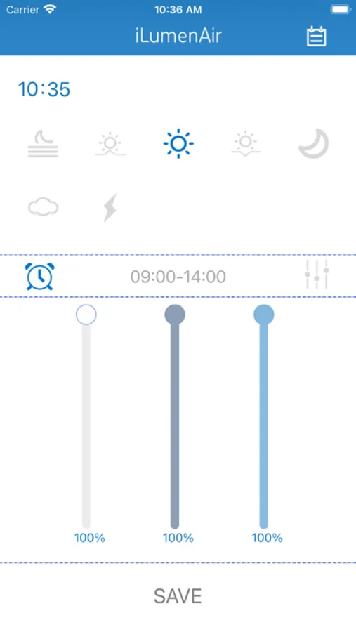 - Free adjusting light effect in five timers: dawn, sunrise, daytime, sunset and nighttime. Enable automatic cycle of light shift in a day.