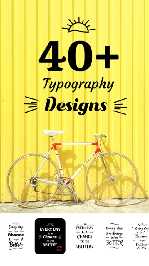 Easy to use app with an intuitive interface. Just select a typography and type a meaningful or funny text with a font of your choosing on preferred background. You can use your camera to make new pictures or use existing pics from the gallery or wallpapers included in the app.