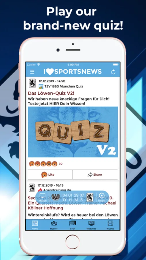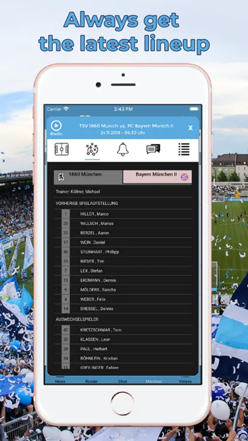 You are a fan of TSV 1860 Munich and you always want to have the latest news about the team and its players? You want to know which player is fit, injured, ill or banned? You are interested in the latest transfer rumors? You always wanted to get the latest Twitter news of ALL your favorite stars? There hasn't been an app, which could satisfy your curiosity and hunger for all information regarding the German championship record-holders?
