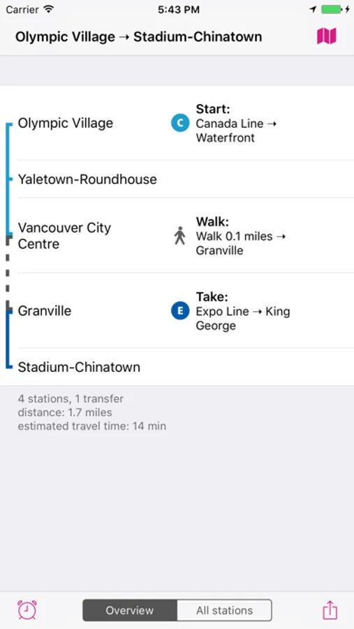 ROUTE PLANNER - instantly finds the fastest route and displays it on the map including transfer stations.