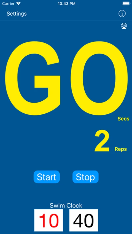 Start swim groups at fixed intervals with "Take Your Marks" and "GO" sounds.