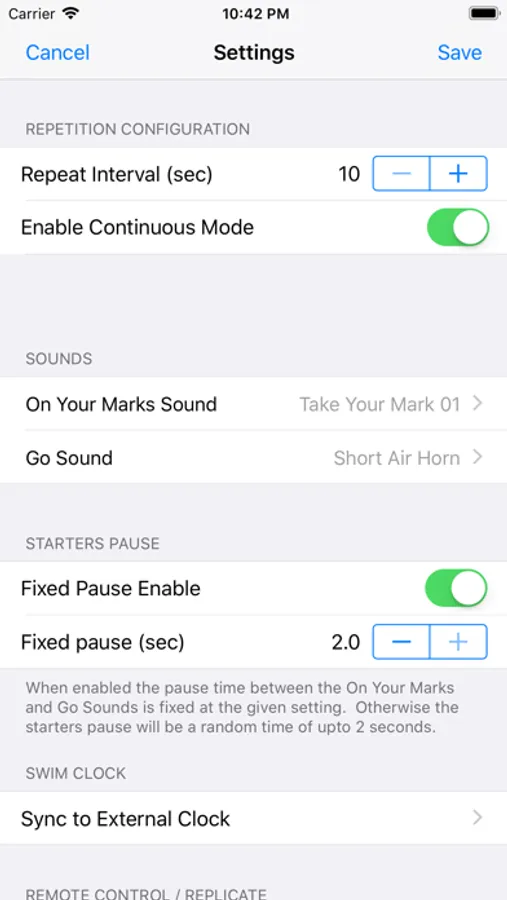 Select built-in or custom "Take Your Marks" and 'Go' signal sounds.