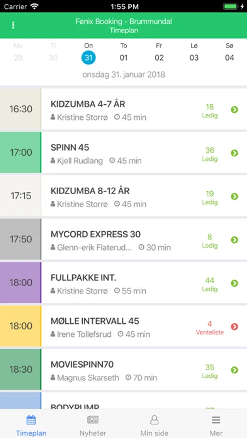 Bruk telefonen til å booke, kansellere eller sette deg på venteliste til gruppetimer hos Fønix Treningssenter.