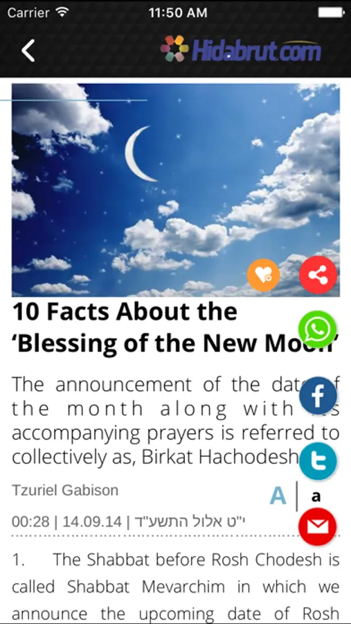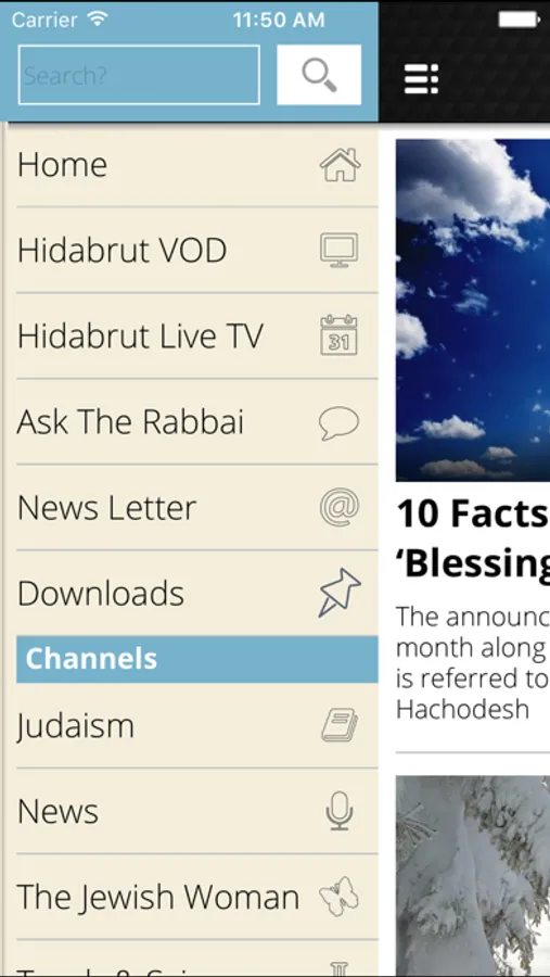 Hidabrut website’s app: fascinating articles, a huge, free film database, children's programs, an archive of Q & A, and real-time Hidabrut channel. All completely free!