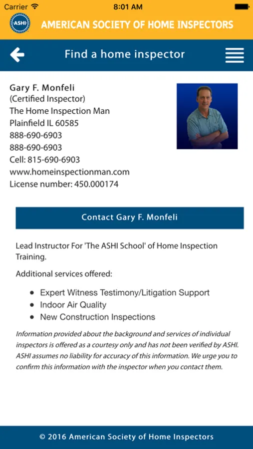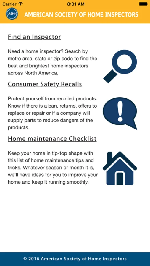 The American Society of Home Inspectors has developed this specialized app to allow users to search for ASHI home inspectors using their handheld devices. The app also contains a search feature for finding the latest consumer recalls and a home maintenance checklist.