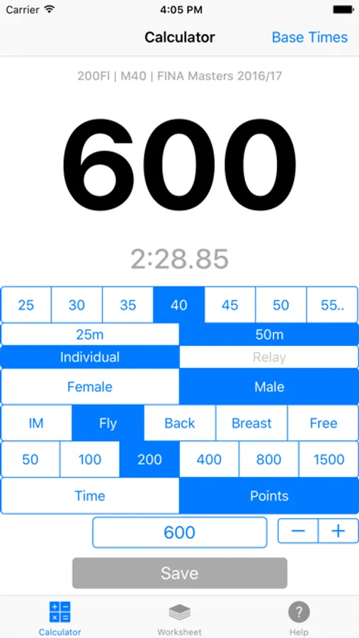 It has never been easier to convert swim results into universal FINA points and back to compare swimmers’ performance across event types and even age groups for self-assessment, official rankings and team competitions. Lets coaches, swimmers or parents quickly: