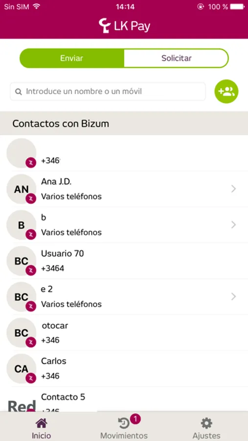 o Solicitar dinero: Seleccionando el contacto o tecleando el número de móvil y anotando el importe, podrás solicitar dinero a cualquier persona.