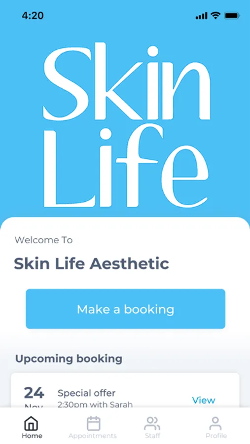 The Skin Life Aesthetic app makes booking your appointments and managing your loyalty points even easier. You're just a few taps away from feeling good and looking great!