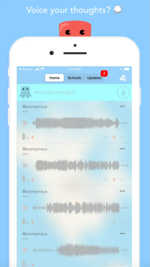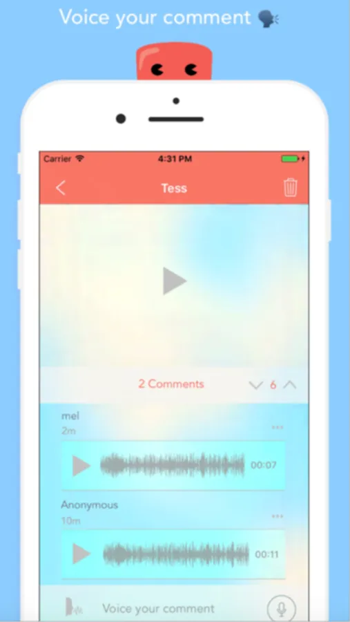 • All users have the ability to react to a post by “voting up” or “voting down” (liking or disliking), or adding to the conversation by commenting with voice.