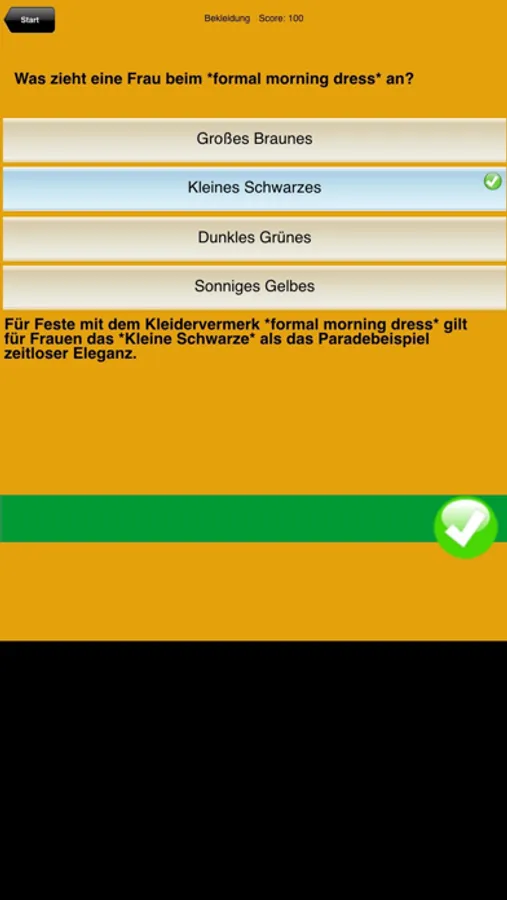 Spannende, aktuelle und gut recherchierte Fragen mit Erklärungen bei falschen Antworten machen das Quiz zu einem unterhaltsamen Begleiter. Sie können außerdem die einzelnen Themenrunden separat durchspielen. Die Themenrunden haben Inhalte aus den Bereichen: Bekleidung, Berufsleben, Tischsitten, Feiertage, Small Talk, Soziales, Feiern und Zahlen.