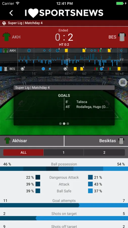 - Extensive stats - including goal-scorers, cards, substitutions, possession and many more