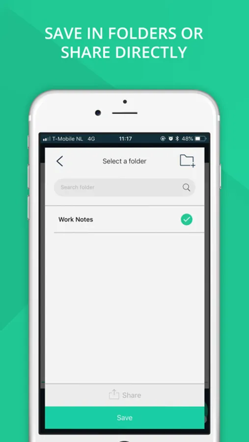 You are in control! Structure your notes, thoughts and creations by naming them and saving them to folders. This way you keep an overview, can easily navigate through your notes and easily find them.